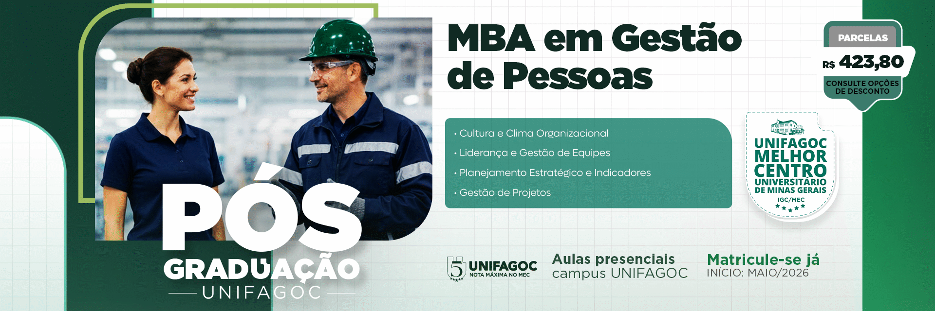 UNIFAGOC está com inscrições abertas para MBA em Gestão de Pessoas com início em maio de 2026
