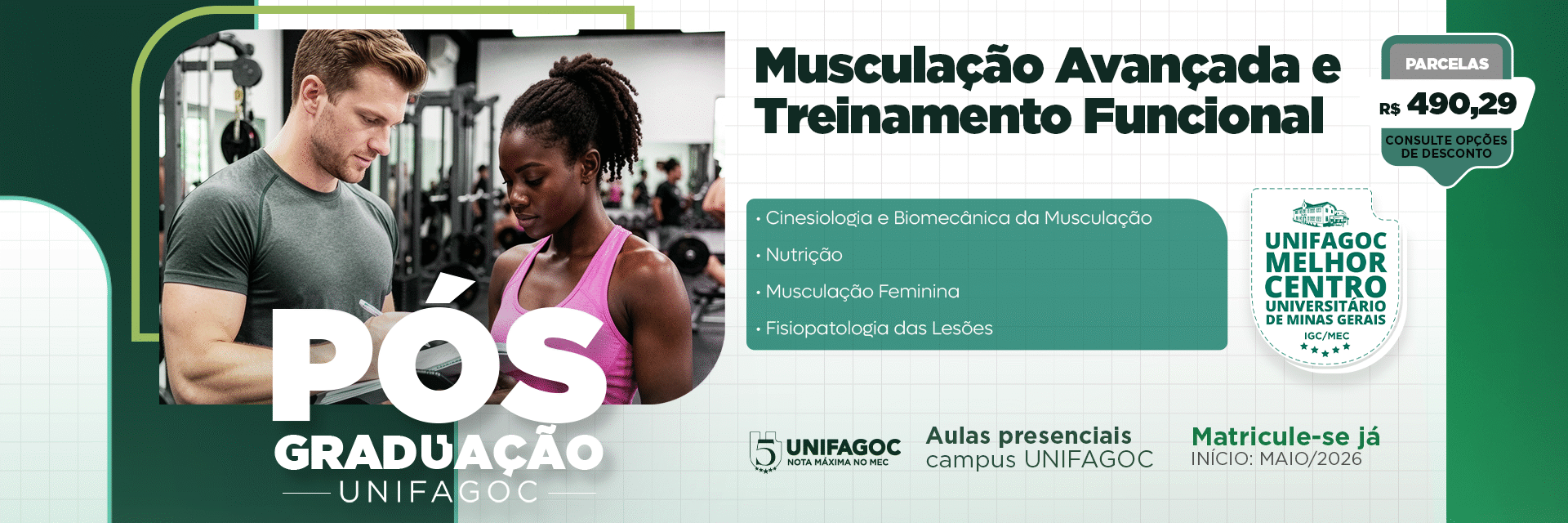 UNIFAGOC abre nova turma da Pós-Graduação em Musculação Avançada e Treinamento Funcional com início em maio de 2026