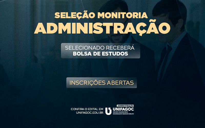 A prova e entrevista para a Monitoria do curso de Administração acontecerão no próximo dia 21 de março, às 18h, no UNIFAGOC.