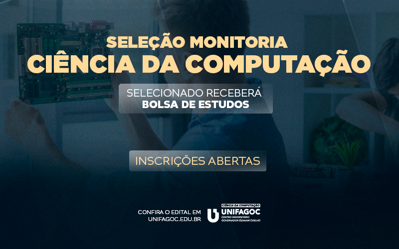 Confira o edital do Programa de Monitoria do curso de Ciência da Computação UNIFAGOC