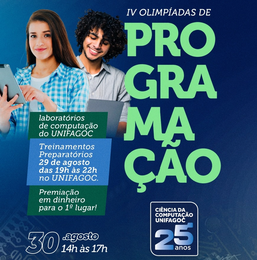 A 4ª edição das Olimpíadas de Programação do curso de Ciência da Computação do UNIFAGOC já tem data marcada: 30 de agosto.
