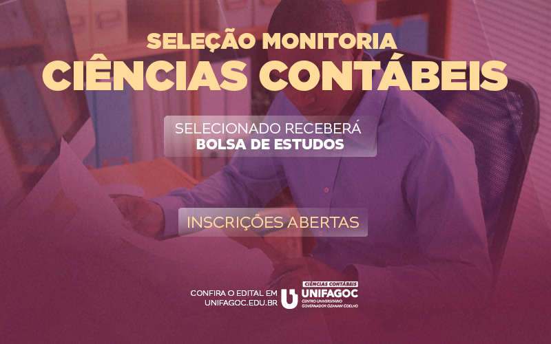 A prova e entrevista para a Monitoria do curso de Ciências Contábeis acontecerão no próximo dia 21 de março, às 18h, no UNIFAGOC.