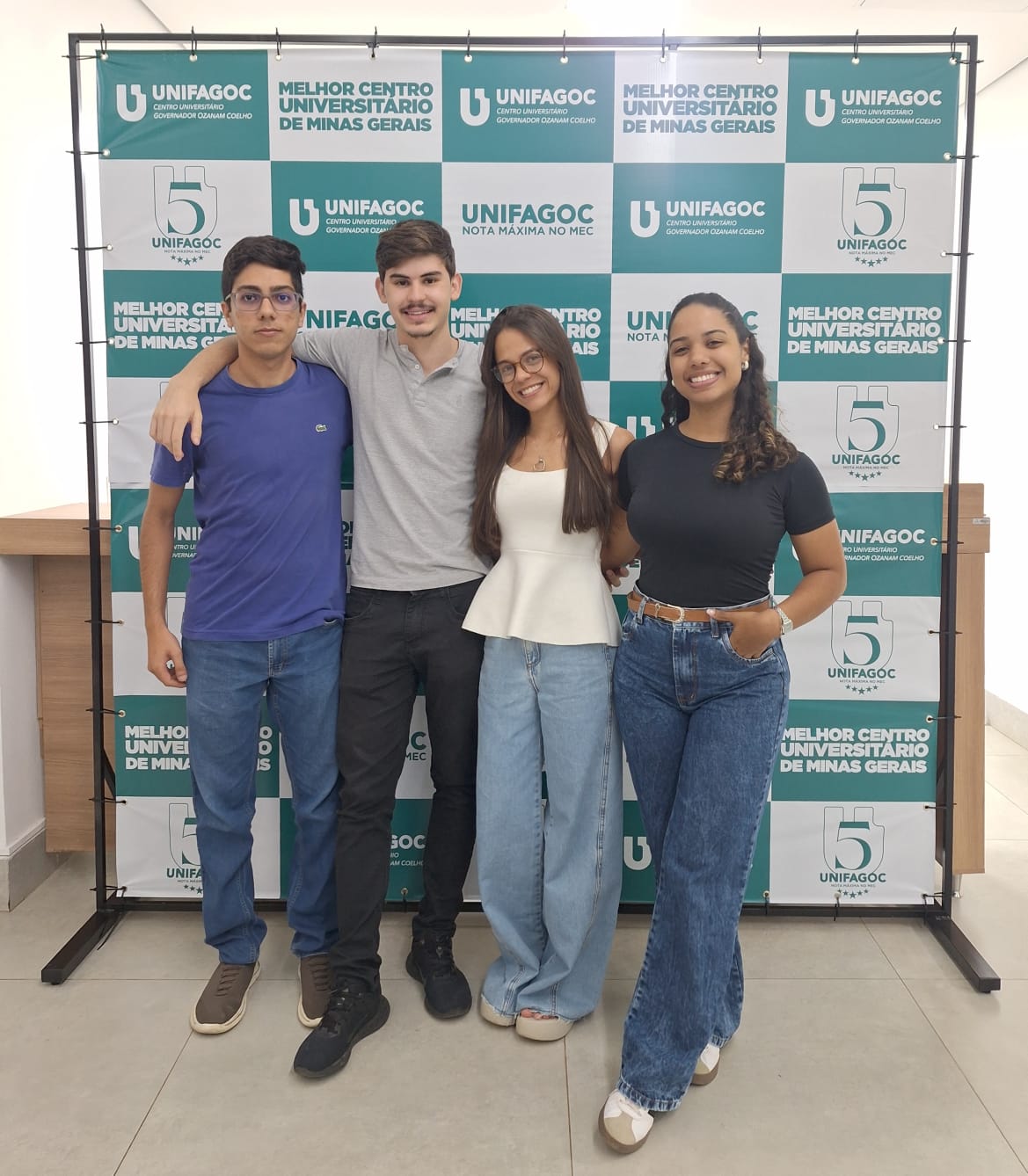 Os alunos Ana Clara Magalhães, Camilla Gonçalves, Cailane Oliveira, Erick Labanca Garcia e Luis Fernando Coelho Dias, do curso de Direito do UNIFAGOC chegaram à segunda fase da 4ª Competição Acadêmica CAAMG 2025 — Práticas Jurídicas, evento promovido pela Caixa de Assistência dos Advogados de Minas Gerais (CAAMG).