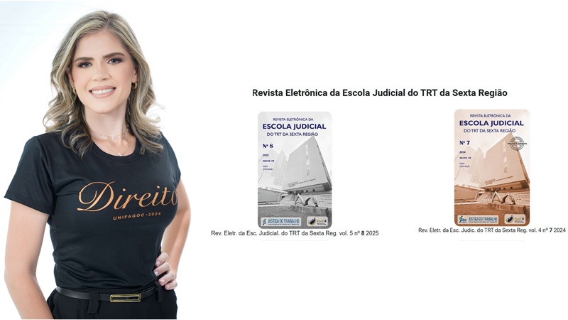 A egressa Elenice Cristina Crisóstomo Pinheiro, formada em 2024 no curso de Direito do UNIFAGOC, teve o artigo, fruto de seu Trabalho de Conclusão de Curso (TCC), aceito para publicação na Revista Eletrônica da Escola Judicial do Tribunal Regional do Trabalho da 6ª Região.