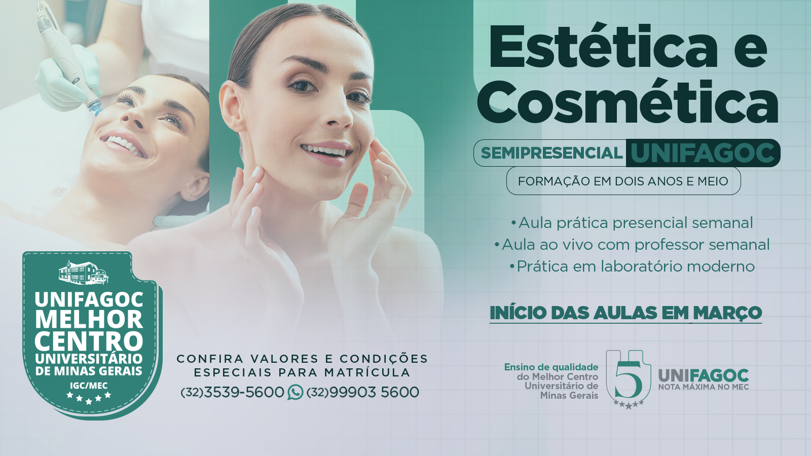 Com essa atualização, o curso de Estética e Cosmética do UNIFAGOC se consolida como uma opção alinhada às demandas do mercado e às novas formas de aprender, sem perder a essência do ensino de qualidade que transforma vidas.