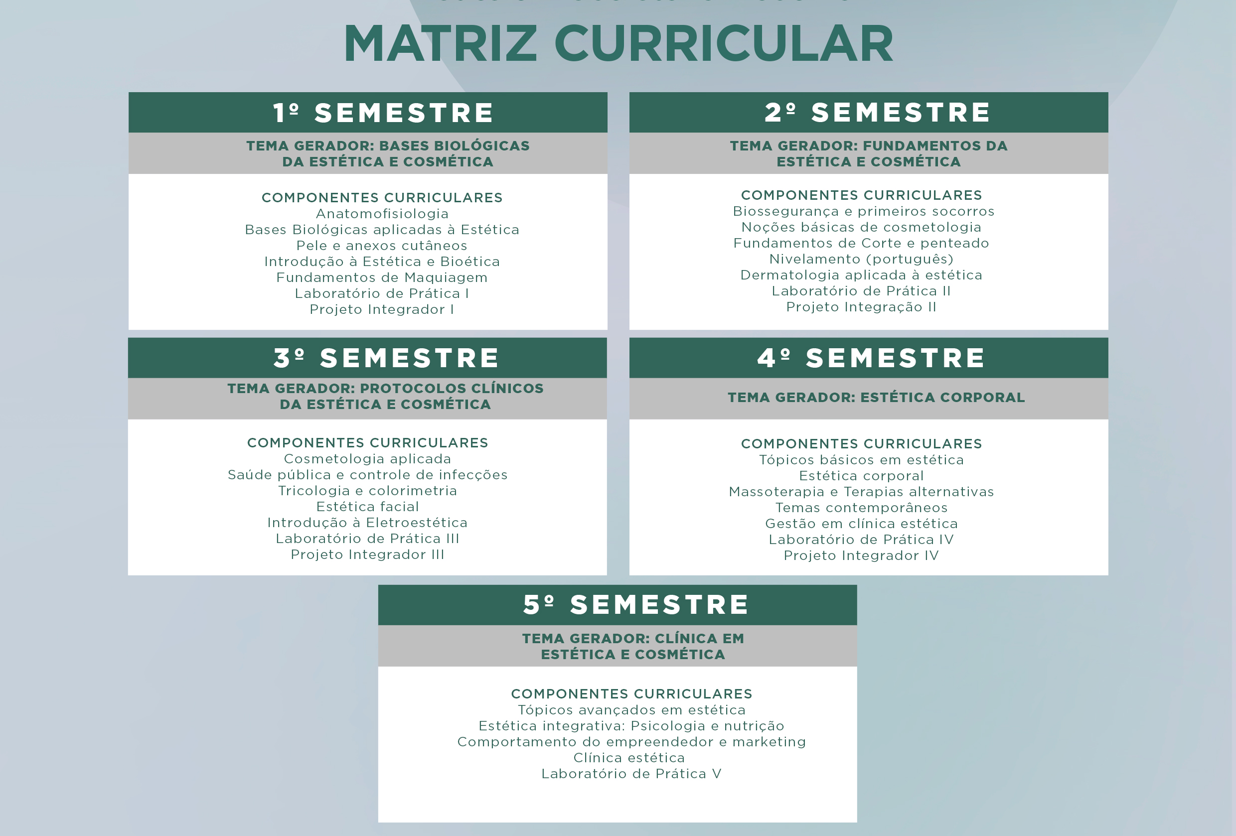 A nova matriz curricular foi estruturada em cinco semestres, permitindo a conclusão da graduação em dois anos e meio. Com essa organização, o curso alia base científica, domínio técnico, visão empreendedora e prática constante, formando profissionais completos para um mercado que não para de crescer.