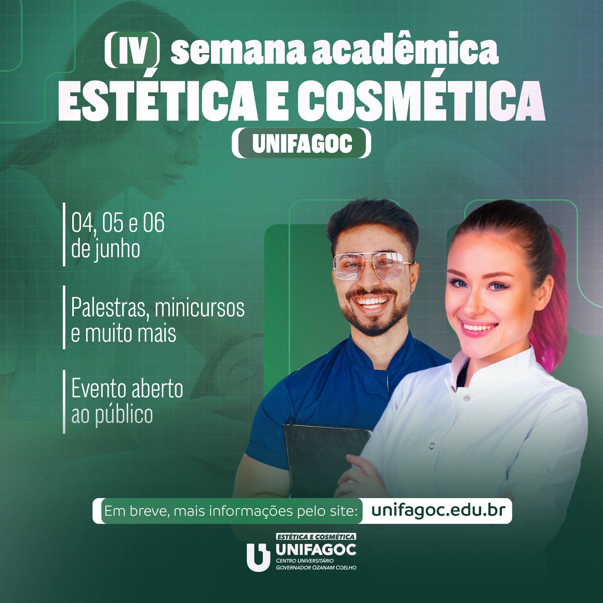 Os preparativos para mais uma Semana Acadêmica do curso de Estética e Cosmética do UNIFAGOC estão a todo vapor. Neste ano, o evento que proporciona aos alunos um contato com diferentes profissionais e diversas áreas da profissão, acontecerá entre os dias 04 e 06 de junho.