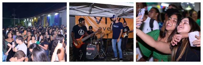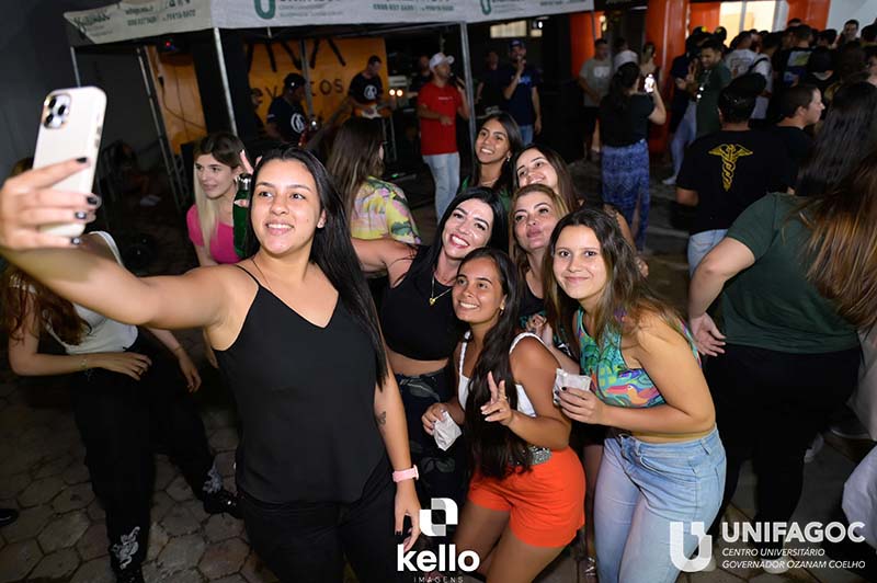 Os acadêmicos do período noturno também foram recebidos com as músicas da banda de carnaval. Mais tarde, durante o intervalo, foi a vez da dupla Guilherme e Thiago garantir a animação. Pipoca, algodão doce, cabine de fotos, Viva Eventos e Kello Imagens também fizeram parte da programação noturna do volta às aulas.