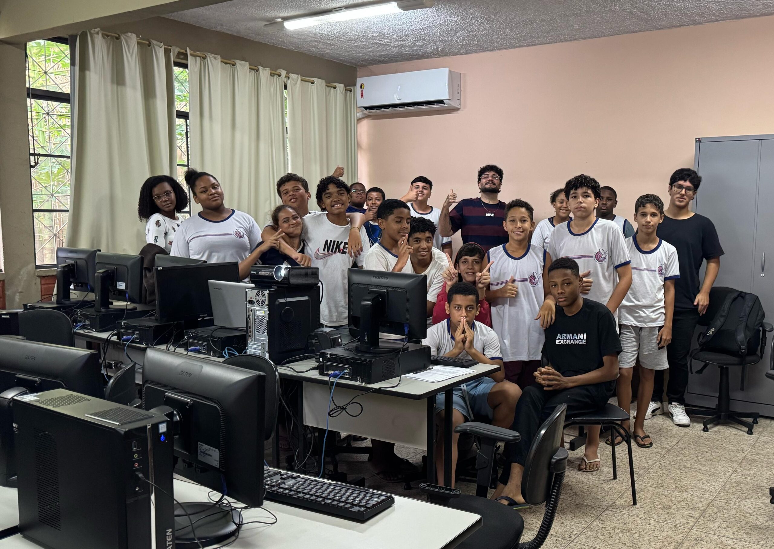Sob a orientação da professora Ana Amélia Pereira de Souza, os alunos Nathan Machado Paschoalino e Raphael de Paula Erbiste coordenaram atividades que trouxeram a gamificação como recurso para aproximar os jovens do universo da computação de forma lúdica e engajadora. Nathan destacou os desafios enfrentados durante o projeto e compartilhou sua experiência.