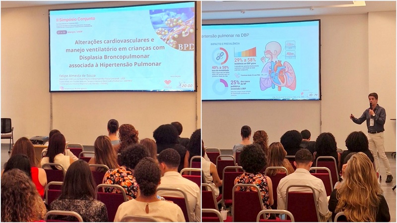 Durante o evento, o docente ministrou a palestra “Alterações Cardiovasculares e Manejo Ventilatório em Crianças com Displasia Broncopulmonar Associada à Hipertensão Pulmonar Crônica”, contribuindo para a discussão de temas atuais e relevantes na fisioterapia cardiovascular, respiratória e pediátrica.