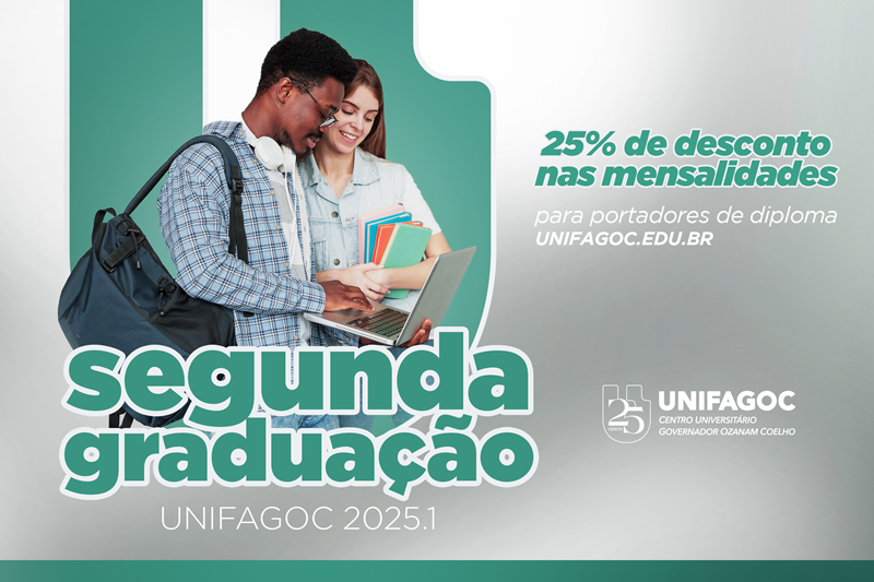 O UNIFAGOC oferece condição especial para quem já possui ensino superior e deseja ingressar em mais uma graduação em 2025-1. São disponibilizados 25% de desconto no valor líquido da matrícula e das mensalidades para os Portadores de Diploma, até o final da graduação, em cursos selecionados.