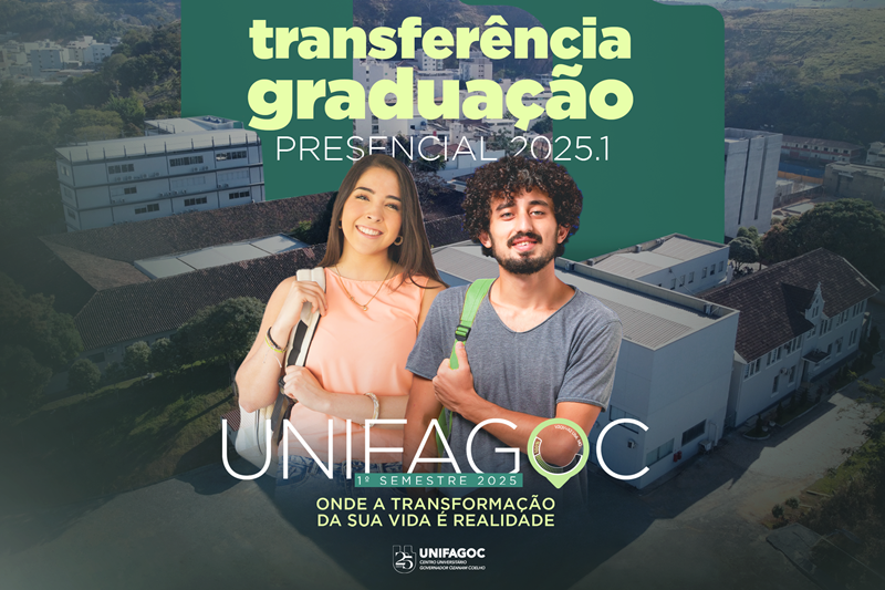 Deseja transferir seu curso de graduação para o UNIFAGOC 2025-1? No Centro Universitário ubaense, os alunos vindos de Transferência de outras IES têm condições especiais. São oferecidos 25% de desconto no valor líquido da matrícula e nas mensalidades até a conclusão do curso em cursos selecionados.