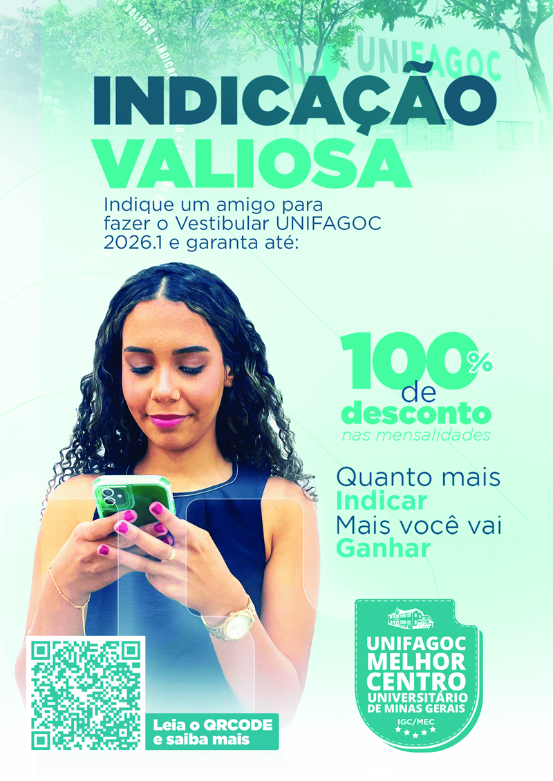 O programa Indicação Valiosa é uma oportunidade oferecida pelo UNIFAGOC aos seus alunos para que possam indicar amigos e familiares interessados em ingressar na instituição e, com isso, conquistar até 100% de desconto nas mensalidades.