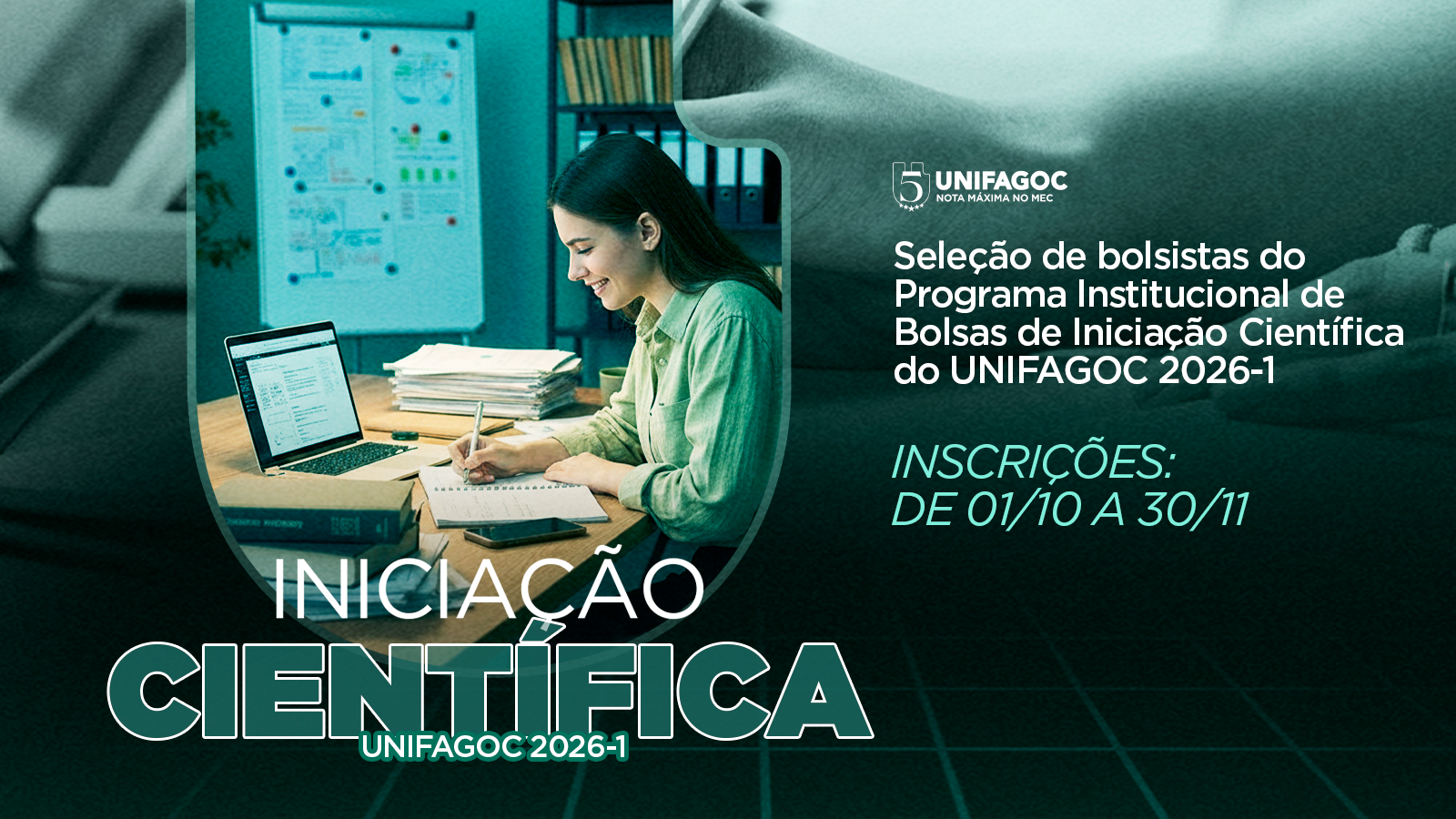Estão abertas, no período de 01 de outubro a 30 de novembro, as inscrições para seleção de bolsistas do Programa Institucional de Bolsas de Iniciação Científica do UNIFAGOC 2026-1, administrado pela Comissão Permanente de Acompanhamento de Iniciação Científica (COPIC) da instituição.