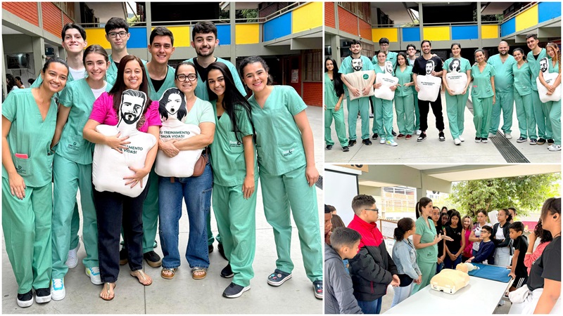 Alunos do curso de Medicina do UNIFAGOC, supervisionados pelo professor doutor Álvaro Rivelli, realizaram capacitação sobre a Lei Lucas na Escola Estadual São José, em Ubá, no dia 10 de agosto. Durante a atividade, estudantes, professores e demais servidores da escola tiveram a oportunidade de aprender na teoria e na prática sobre primeiros socorros.