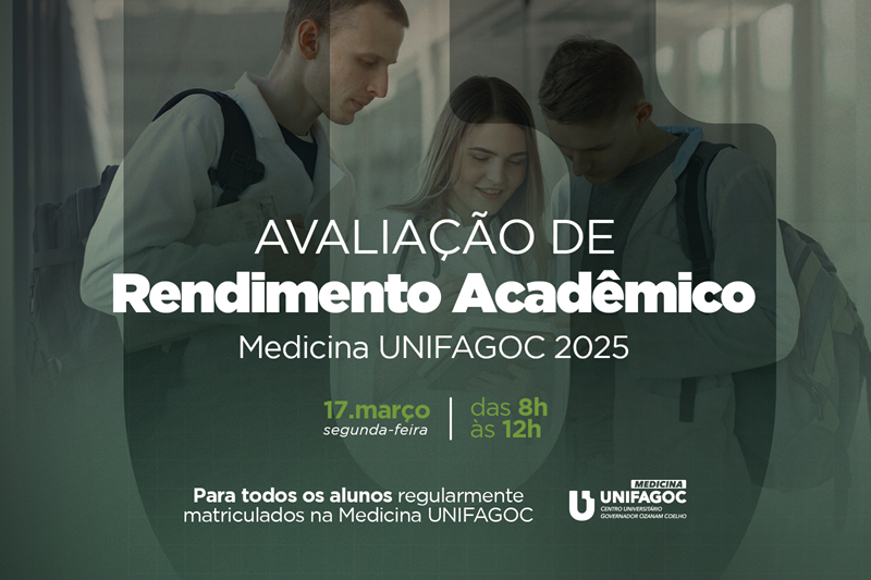 No dia 17 de março, segunda-feira, das 8h às 12h, será realizada a Avaliação de Rendimento Acadêmico (ARA) 2025 do curso de Medicina do UNIFAGOC, destinada a todos os alunos regularmente matriculados na graduação.