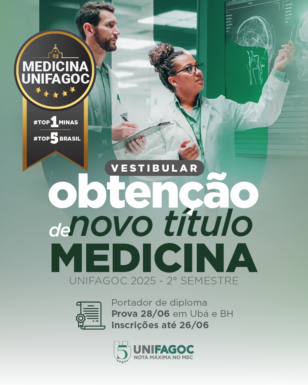 Inscrições abertas para o processo seletivo de Obtenção de Novo Título da Medicina UNIFAGOC 2025-2