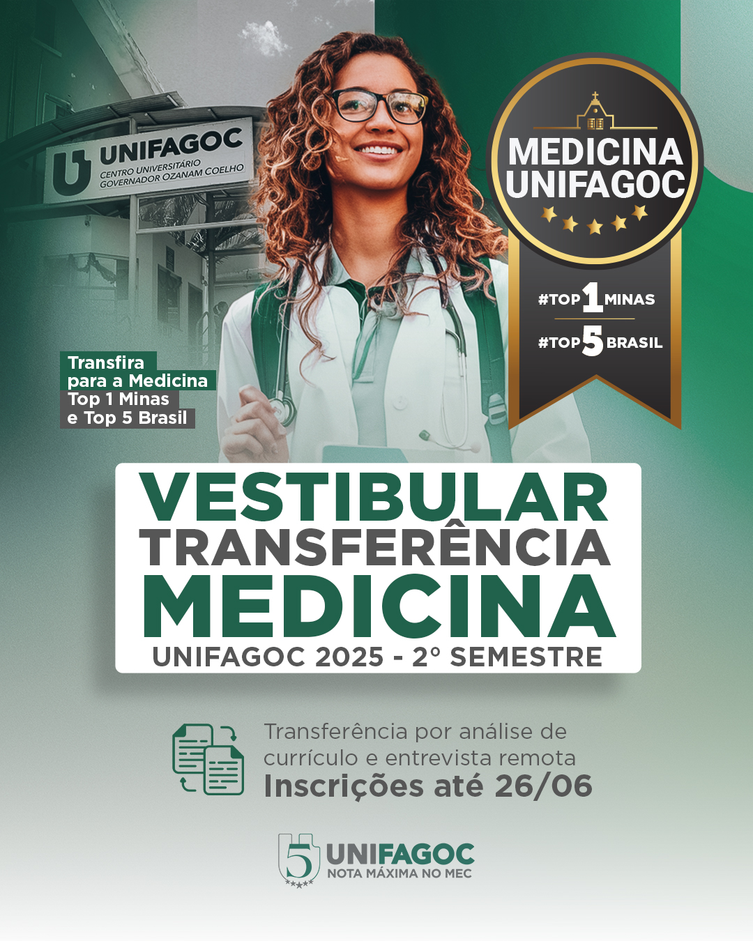 Estão abertas as inscrições para participar do processo seletivo, destinado ao preenchimento de vagas remanescentes para o 2º semestre de 2025, para Transferência do curso de Medicina do UNIFAGOC.