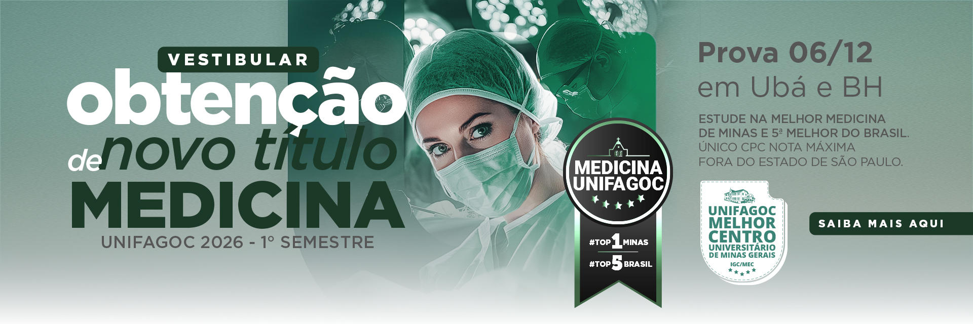 O Centro Universitário UNIFAGOC acaba de alcançar um feito inédito e extraordinário: tornar-se o MELHOR CENTRO UNIVERSITÁRIO DE MINAS GERAIS. O reconhecimento vem após o curso de Medicina da Instituição conquistar a nota máxima (5) no Conceito Preliminar de Curso (CPC) — o mais importante indicador de qualidade do Ministério da Educação (MEC).