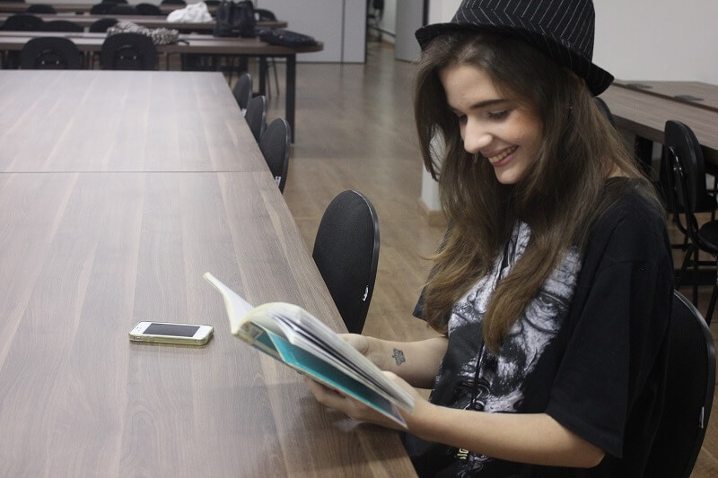 Quando se trata de redes sociais, a aluna conta que começou a achar chato e a se sentir incomodada quando as pessoas a chamavam para conversar no momento em que ela estava lendo livros, que é uma paixão da estudante. “Whatsapp eu não cheguei nem a baixar; eu nem uso chip no celular por achar incomodo. Quando é por emergência, uso o telefone fixo ou trago o celular da minha mãe para a faculdade”, explica.