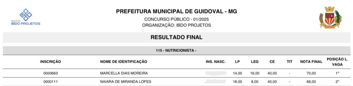 Duas egressas do curso de Nutrição do UNIFAGOC, Marcella Dias Moreira e Naiara de Miranda Lopes, foram aprovadas no concurso público da Prefeitura Municipal de Guidoval, conquistando o 1º e o 2º lugar, respectivamente, conforme resultado divulgado na última sexta-feira.
