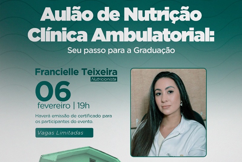 O curso de Nutrição UNIFAGOC vai promover o aulão sobre Nutrição Clínica Ambulatorial: seu passo para a graduação, no dia 06 de Fevereiro. O evento é voltado para os interessados no curso de Nutrição e quem deseja conhecer mais sobre essa área de atuação e as oportunidades do mercado de trabalho.