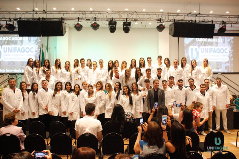 O UNIFAGOC realizou no dia 11 de outubro a Cerimônia de Entrega de Jalecos para os alunos do curso de Odontologia. A segunda turma diurna e a sétima turma noturna receberam das mãos da diretoria do curso e do vice-reitor da instituição a peça que representa o início do contato dos estudantes com a prática profissional e celebra mais um passo na formação dos futuros dentistas.