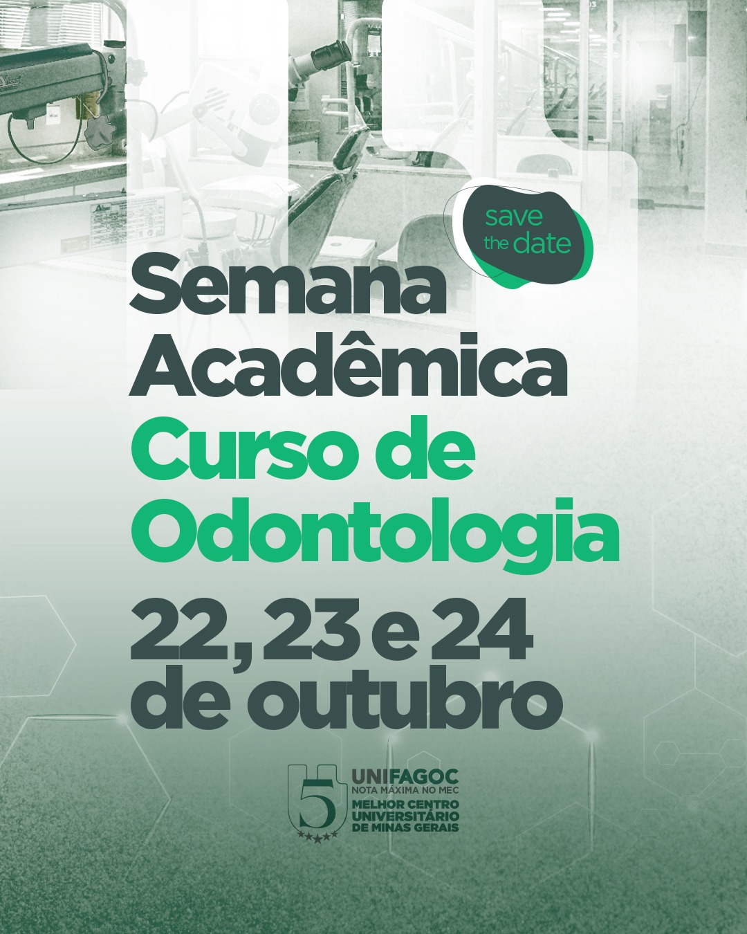 O curso de Odontologia do UNIFAGOC realizará, nos dias 22, 23 e 24 de outubro, mais uma edição da Semana Acadêmica de Odontologia.