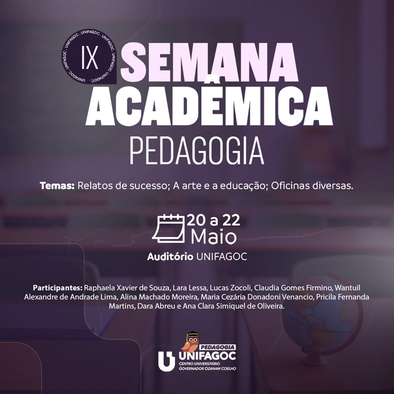 Pedagogia UNIFAGOC promove IX Semana Acadêmica entre os dias 20 e 22 de maio