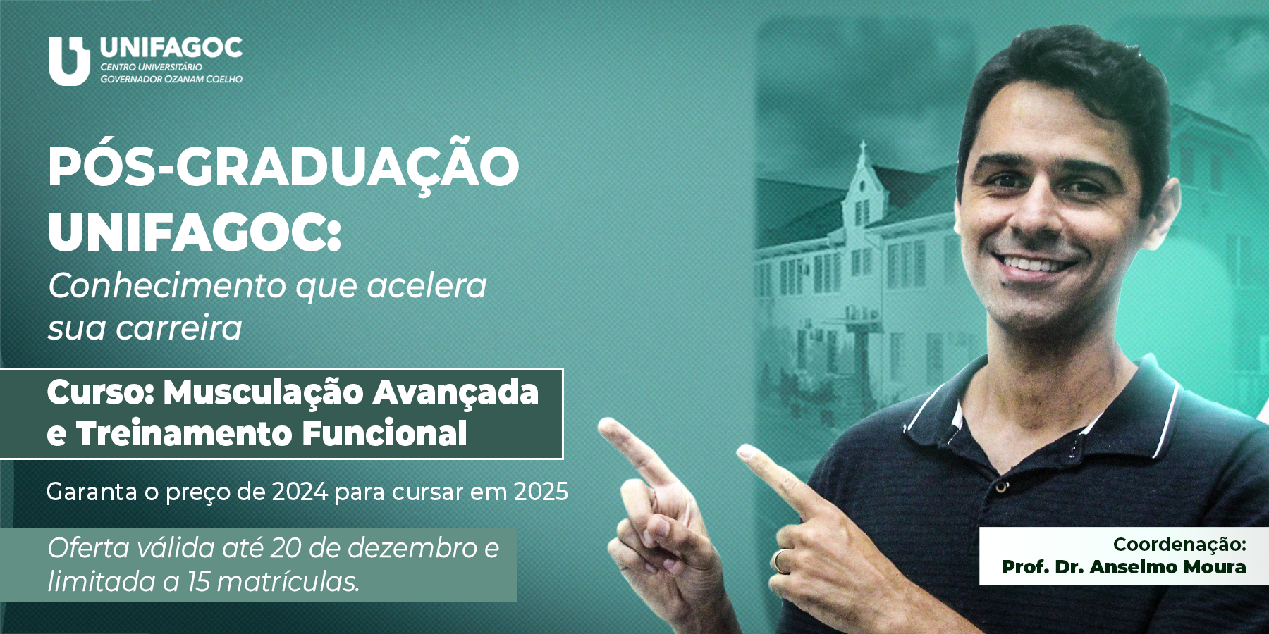 O curso de pós-graduação em Musculação Avançada e Treinamento Funcional do UNIFAGOC tem como objetivo capacitar os pós-graduandos numa base de anatomia, cinesiologia e fisiologia do exercício, da periodização do treinamento e da avaliação do movimento humano.