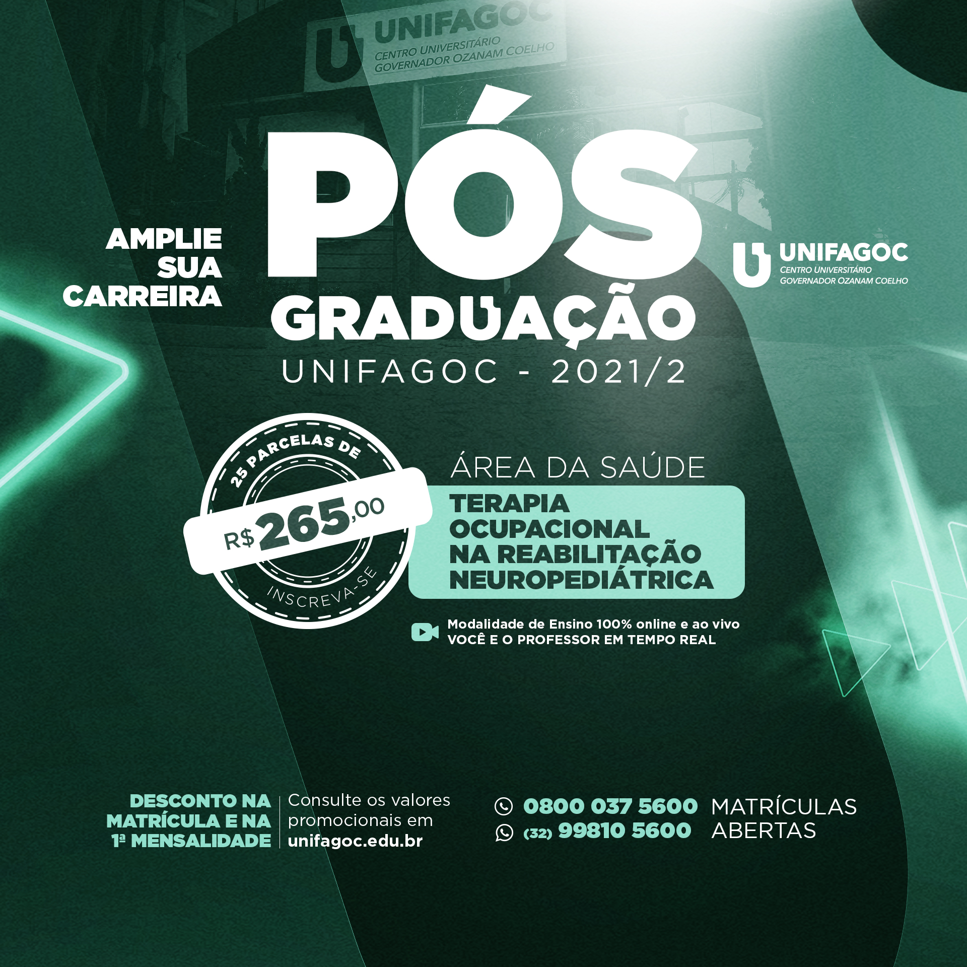 Estão abertas as inscrições para o curso de Terapia Ocupacional na Reabilitação Neuropediátrica do UNIFAGOC e para mais de 20 cursos on-line nas áreas de Educação, Gestão e Negócios e Saúde.