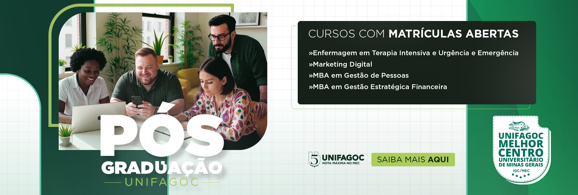 Se você busca crescimento profissional e quer se destacar no mercado, o UNIFAGOC oferece cursos de pós-graduação voltados para o desenvolvimento de competências práticas, com metodologias ativas e professores com ampla vivência de mercado.