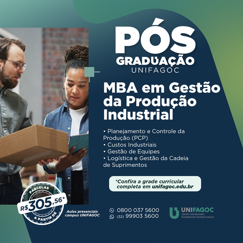 Pós-graduação UNIFAGOC 2024: saiba mais sobre o MBA em Gestão da Produção Industrial