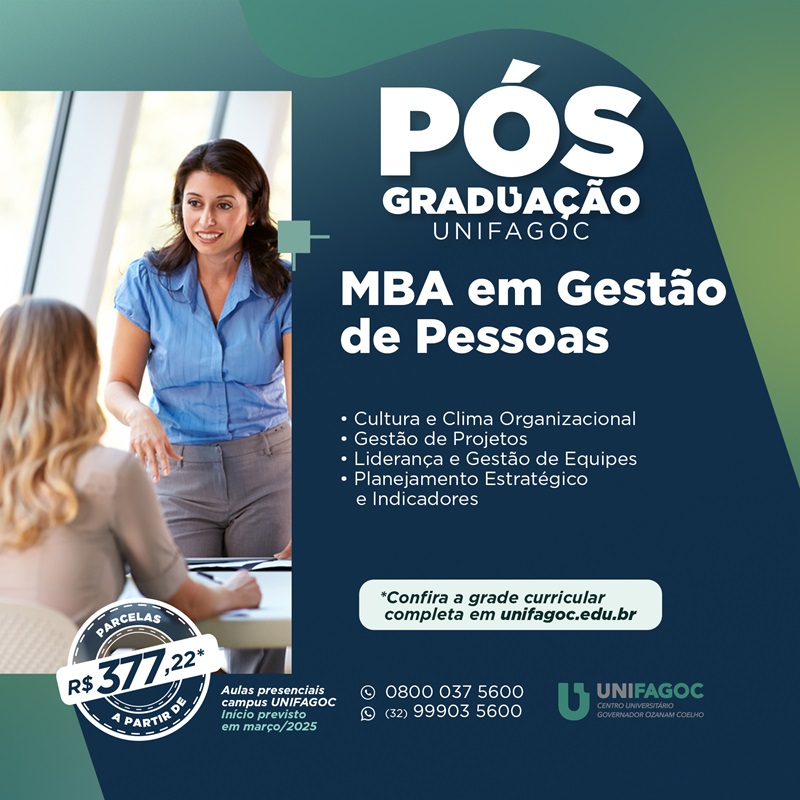 Pós-graduação UNIFAGOC 2025: conheça o MBA em Gestão de Pessoas
