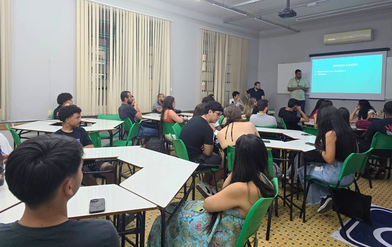 Leonardo compartilhou com os estudantes a importância da multidisciplinaridade e da interação com outras áreas do saber para a atuação profissional, ressaltando que isso é justamente o que o Projeto Integrador proporciona.