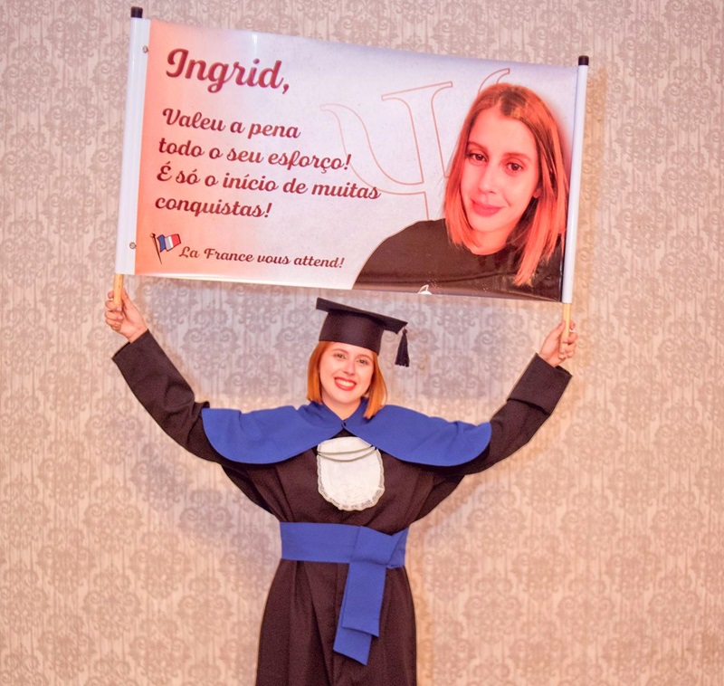 “Eu sempre tive muito interesse por assuntos que pudessem me fazer observar as coisas por uma perspectiva diferente. Sempre fui na minha família a que pensava ‘fora da caixa’ e eu acredito que, não generalizando, isso seja característica comum entre aqueles que decidem fazer psicologia. E na minha vida sempre tive muitos planos, sempre quis ser e fazer muitas coisas e o curso de psicologia foi uma delas. Mas, confesso que foi somente dentro da graduação que eu percebi ter tomado a decisão certa de que a psicologia combinava comigo mais do que eu imaginava”, relata Ingrid.