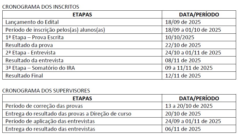 As inscrições devem ser realizadas até o dia 1º de outubro, por meio dos links disponíveis no edital.