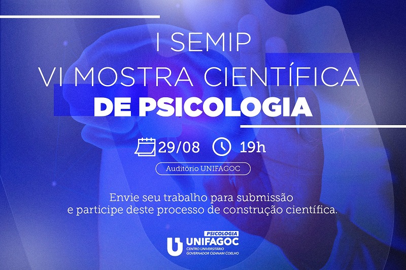 Está aberto o período de submissão de trabalhos para a VI Mostra Científica do curso de Psicologia do UNIFAGOC, que acontece no segundo dia de atividades da I SEMIP (Semana Integrada da Psicologia), 29 de agosto, às 19h no Auditório Ary Barroso.