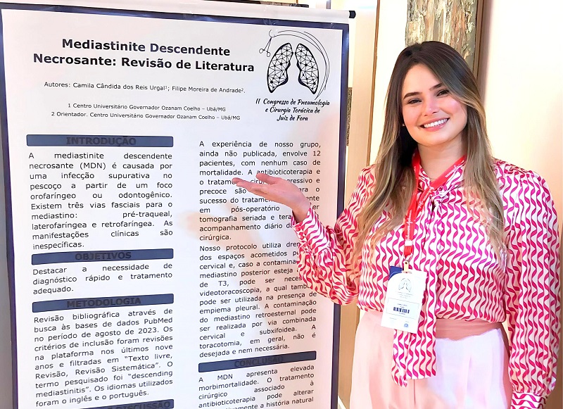 “Fiquei muito feliz ao saber da premiação e vi que todo esforço vale a pena. Quem motivou a participar foi o diretor do curso de Medicina do UNIFAGOC, Dr. Filipe Andrade. A participação em eventos como este é importante para o aprendizado e para conhecer outros acadêmicos de medicina e profissionais da área”, comenta Camila.