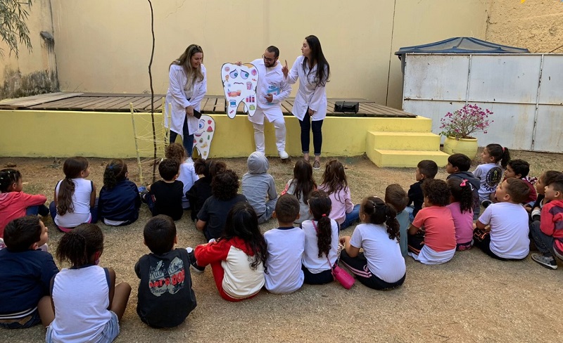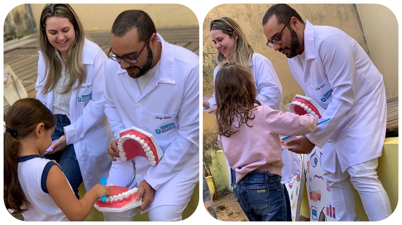 O docente Everton destaca que a participação efetiva dos alunos em meio à comunidade e, principalmente, o desenvolvimento de estratégias de prevenção de saúde bucal com crianças inseridas no ambiente escolar, permite o contato dos discentes com a prática desde os primeiros períodos, garantindo aos mesmos autonomia e segurança na orientação de prevenção das doenças bucais.