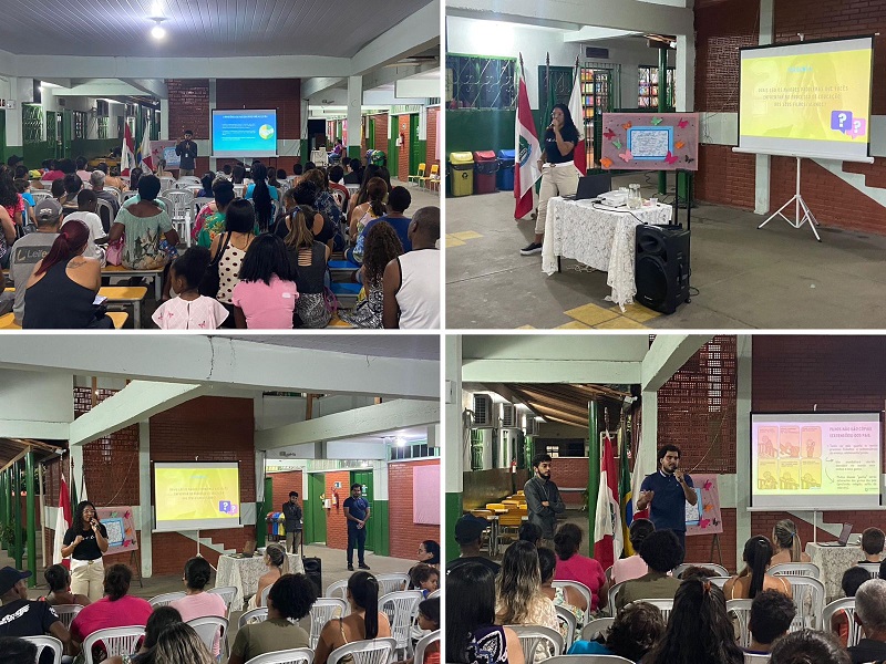 Na oportunidade, a equipe realizou uma palestra intitulada “Educação: e nós com isso?”, que teve por objetivo conscientizar os pais e professores sobre a importância da parceria entre escola e família no processo educativo. O tema abordado na palestra foi de encontro a demanda recebida pela graduação: a dificuldade da escola em estabelecer uma relação de proximidade e parceria com os responsáveis.