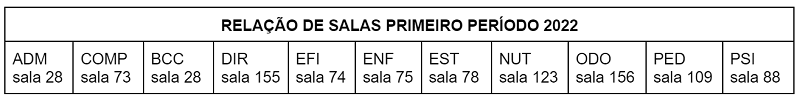 21h às 22h40: Aula normal nas respectivas salas dos cursos