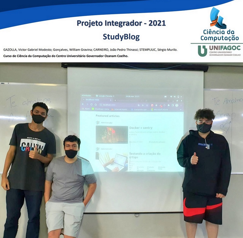 O Projeto StudyBlog, realizado pelos alunos Victor Gabriel Modesto Gazolla, William Gravina Gonçalves e João Pedro Thinassi Carneiro, é um sistema que distribui conteúdos filtrados e de qualidade, para que usuários possam ter boa experiência de estudo, sem a preocupação de estar consumindo algo que não esteja correto, assim, mantendo a segurança do conteúdo e do usuário sobre as informações disponibilizadas no site.