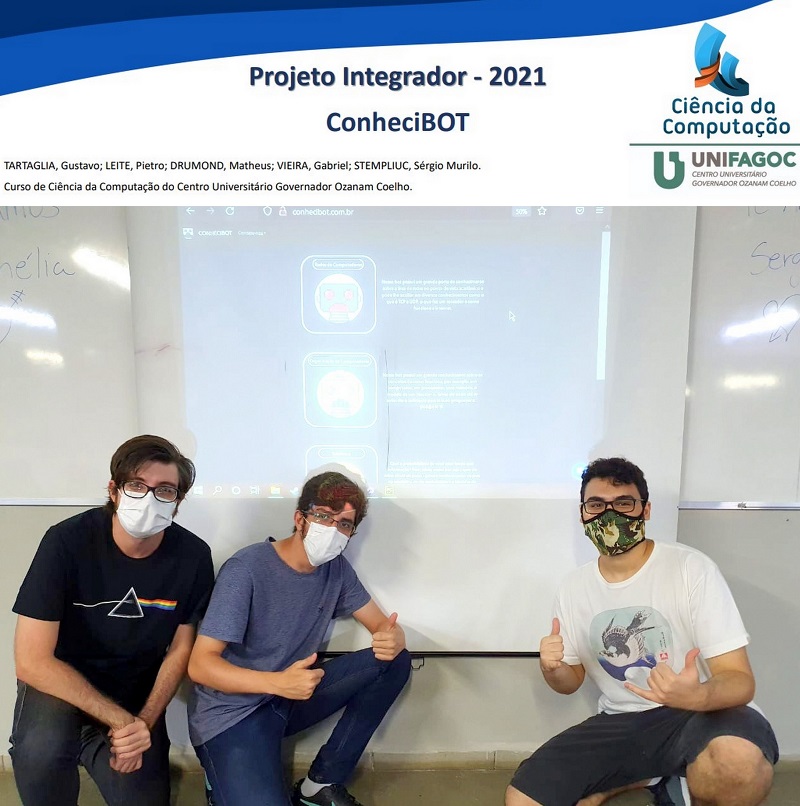 “Os Projetos Integradores em todos os semestres foram bastante importantes para mim e para meus colegas de grupo, antigos e atuais. É uma matéria que nos dá liberdade de fazer o que desejamos e da forma que desejamos. No ConheciBOT fomos muito além e mexemos com tecnologias que eram, pelo menos para mim, abstratas. Então, estudá-las foi bastante importante para todos do grupo, pois cada um se identificou com certo tipo de desenvolvimento, nesse caso o Front-end e o Back-end”, ressalta Gabriel.
