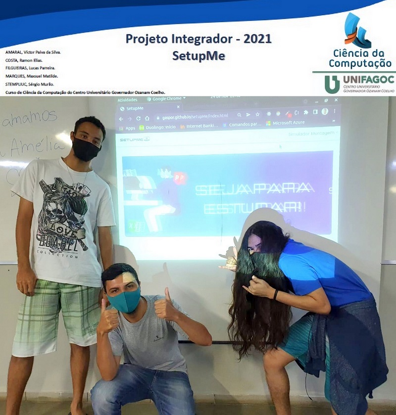 Desenvolvido pelos alunos Víctor Paiva da Silva Amaral, Ramon Elias Costa, Lucas Parreira Filgueiras e Maxsuel Matilde Marques, o Projeto SetupMe tem como intuito auxiliar os usuários leigos em montagem de computadores a escolher as melhores peças para suas respectivas necessidades: estudos, trabalho ou para jogos.