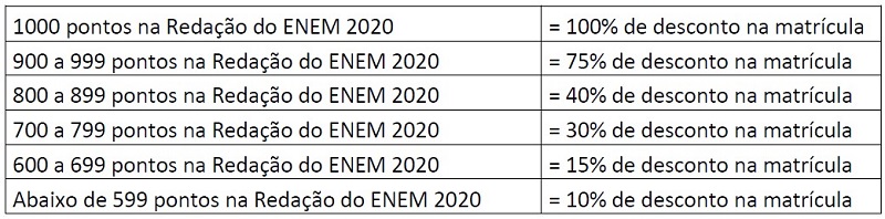 Os alunos que efetuaram a sua matrícula entre os dias 18/10/2021 e 11/02/2022, realizaram o Enem 2021 e a nota da Redação garante desconto na matrícula superior ao que o aluno já recebeu ao se matricular no UNIFAGOC antes deste regulamento, será concedido como desconto, na parcela com vencimento no mês de abril, a diferença entre o novo benefício e o desconto ofertado e recebido pelo aluno na matrícula anteriormente, conforme proporcionalidade da sua nota.