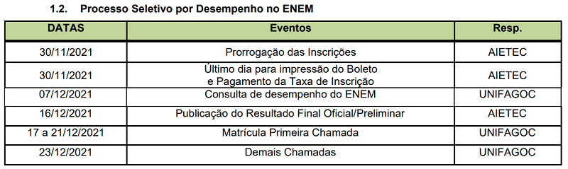 Vale ressaltar que as vagas que não forem preenchidas pelo FIES serão remanejadas para os candidatos que participaram do Processo Seletivo por meio da Nota do Enem. A convocação se dará de acordo com a lista classificatória, até o limite de preenchimento das vagas.