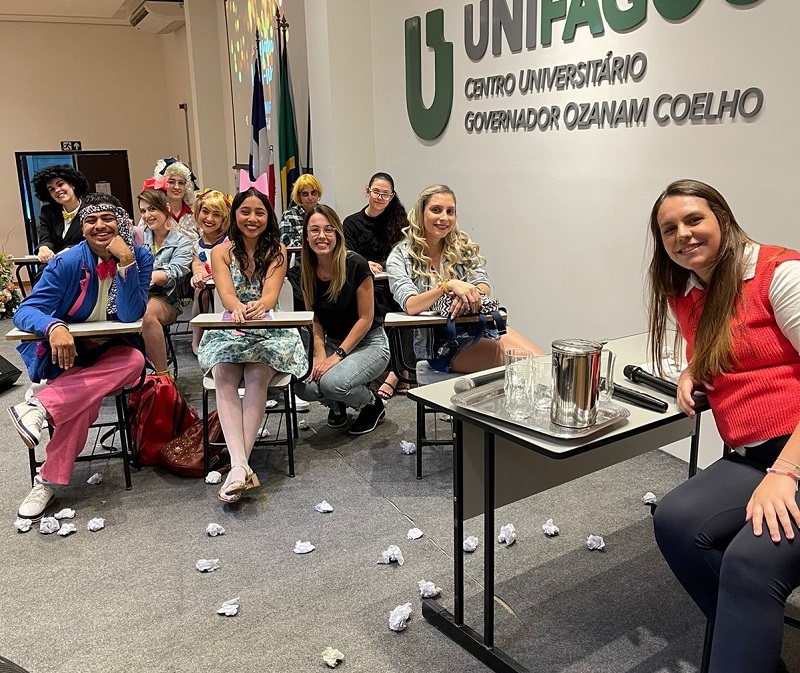 Além disso, os alunos do sétimo período de Pedagogia apresentaram uma peça teatral sobre a Escolinha do professor Raimundo, que tirou muitas risadas do público.