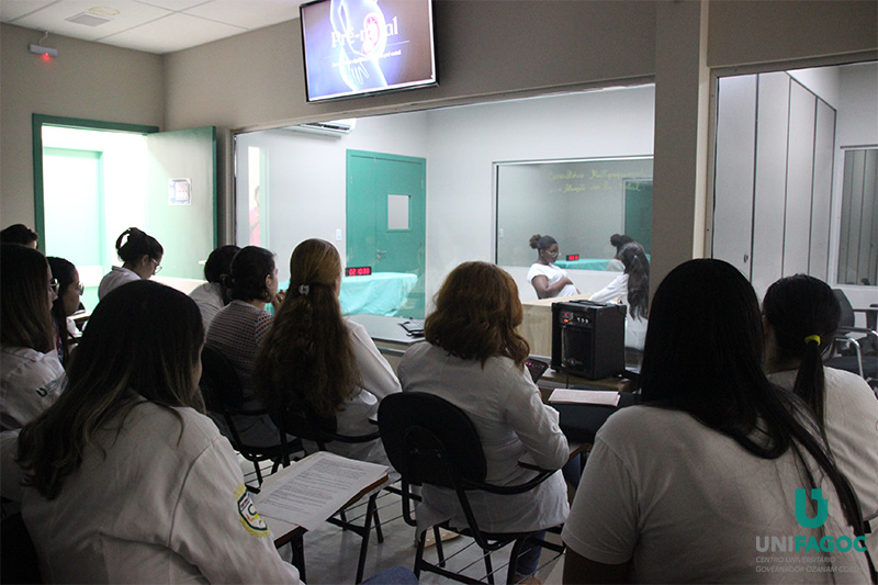 Os alunos foram organizados em grupos que abordaram diferentes temas, como Atenção Pré-natal, Exame físico ginecológico e Desenvolvimento e alterações mamárias. As aulas aconteceram no Real Lab, laboratório de simulação realística do UNIFAGOC utilizado pelos cursos da área da saúde.