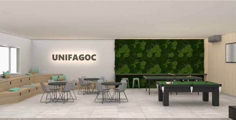 “Somos uma instituição que administra pessoas para ensinar pessoas. Por isso, a necessidade de um espaço para que alunos e colaboradores possam descansar, conversar, para pensar, esquentar uma comida que ela trouxe, guardar algo na geladeira; um espaço para ser utilizado no dia a dia”, explica o vice-reitor do UNIFAGOC, Leonardo Couto.